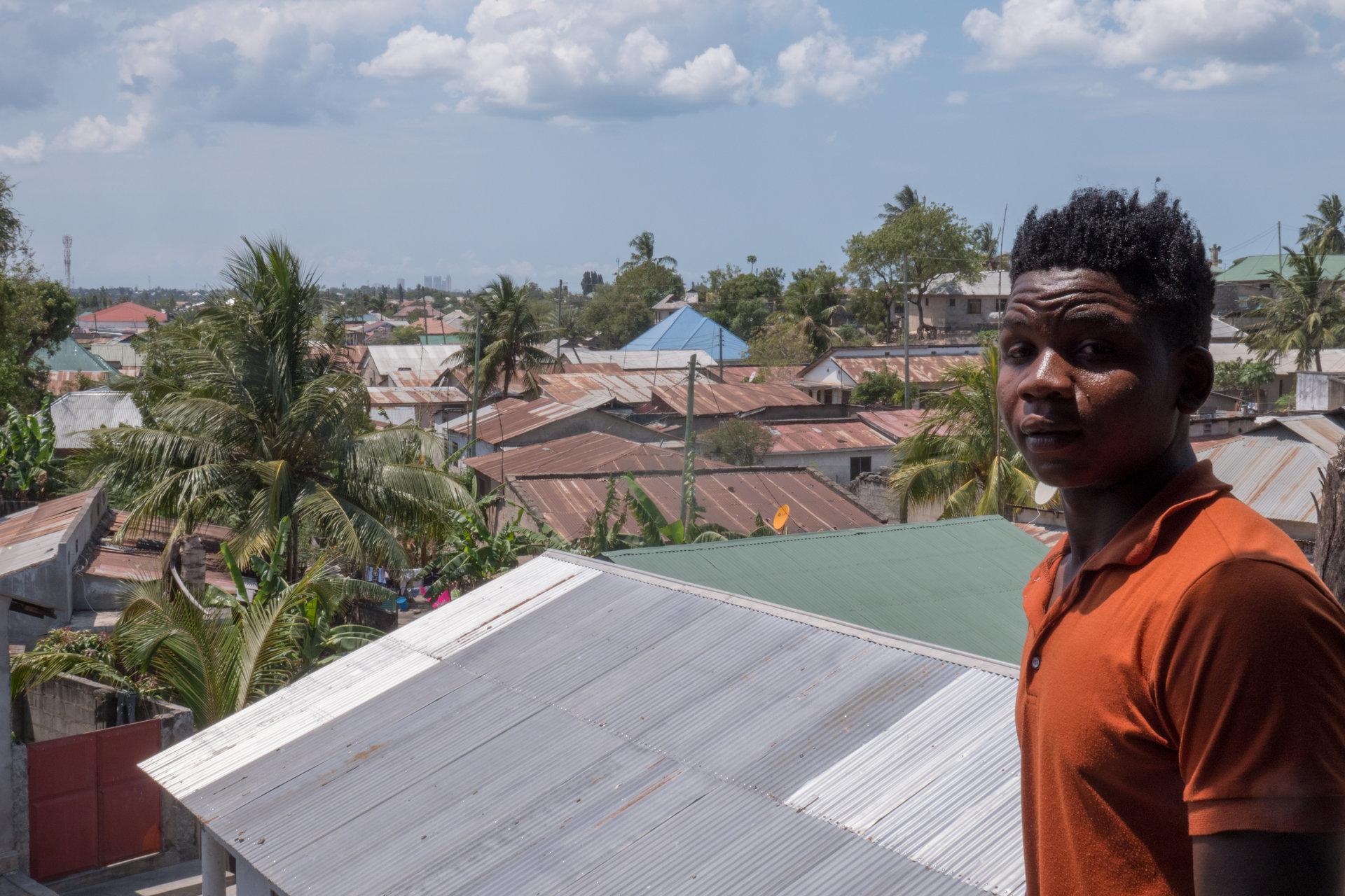 Une chambre est un luxe dans ce pays où un tiers de la population vit à trois ou plus par pièce. Le jeune homme disparaît dans une ruelle parallèle qui descend vers les habitations. Pas de planification, pas de recensement non plus. De là, on prend la mesure: un patchwork de toits en tôles qui s’étalent à perte de vue, des habitations étriquées et construites de manière totalement désordonnée, des ruelles escarpées où seules quelques motos osent s’aventurer. Les urbanistes appellent ce quartier un bidonville. Pourtant, pour qui a vu Kibera à Nairobi ou Khayelitsha près du Cap, Mbagala ressemble plutôt à un village qui n’en finit plus de grandir. Avec ses passages hasardeux qui débouchent sur ce qui pourrait être qualifié de place du village: un arbre, des hommes qui jouent aux dames, un stand de chipsi mayai (frites-œufs), la street food par excellence de Dar es Salaam. L’appel à la prière d’une mosquée éloignée et le terrain sablonneux nous rappellent qu’on est au bord de l’océan Indien. A une trentaine de kilomètres de Zanzibar, une île qui en fait rêver plus d’un.