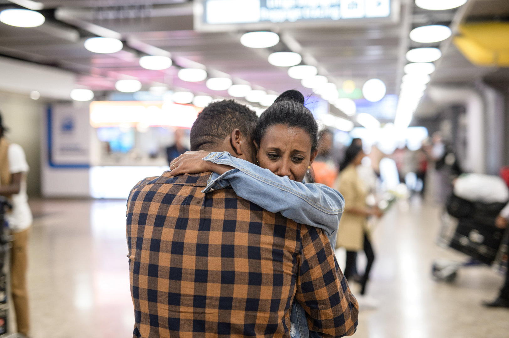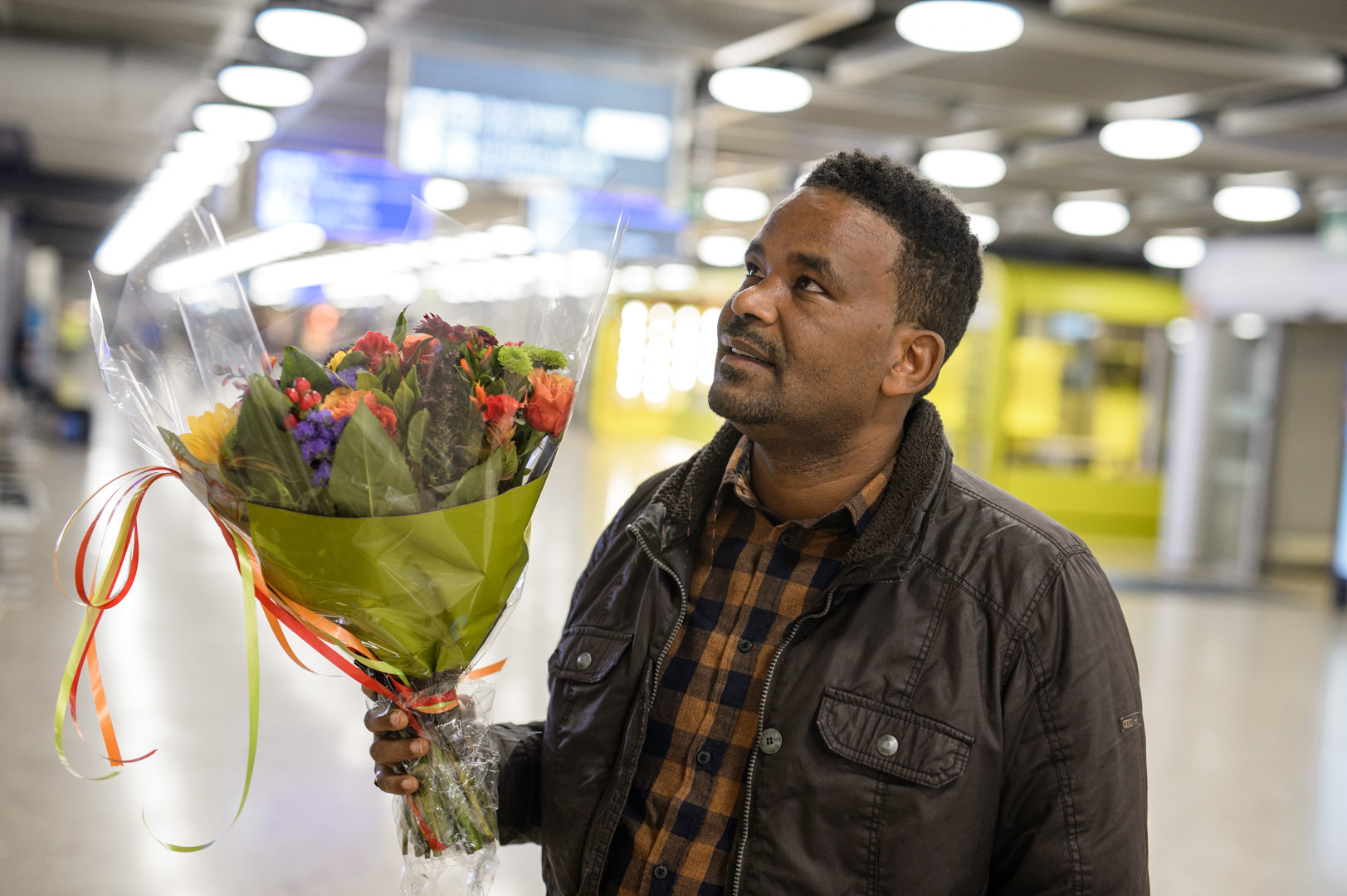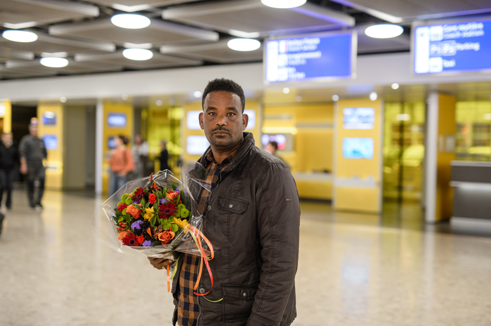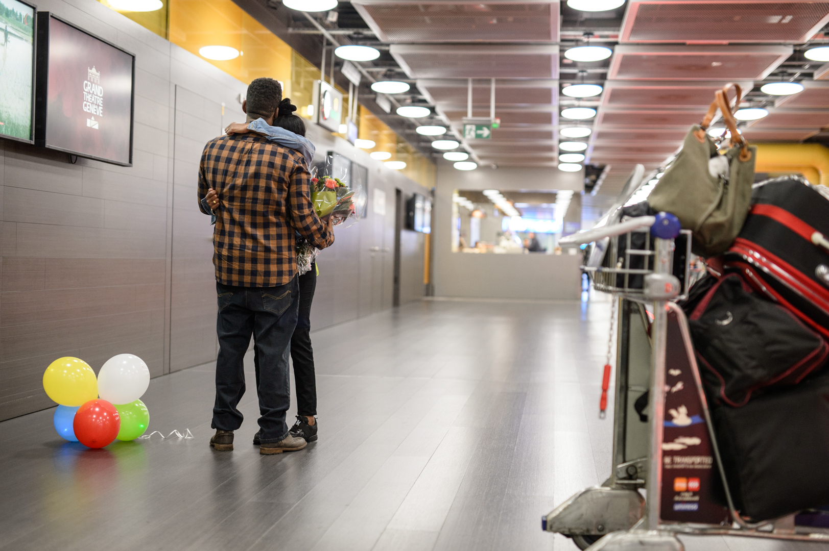 7 septembre 2018, secteur arrivée de l’aéroport de Genève. Il est à peine 6h. Peu de monde. On entend au loin des autolaveuses et les grilles de boutiques qui se hissent et grincent. Mulugeta tient deux bouquets: l’un composé de fleurs, l’autre de ballons multicolores. Il attend le vol direct d’Ethiopian Airlines en provenance d’Addis-Abeba qui doit se poser à 7h25. Le reste est un instant de bonheur intense, de ceux qui bouleversent autant les proches que le quidam. Ces trois-là enfin se voient, enfin se touchent, enfin se pleurent.