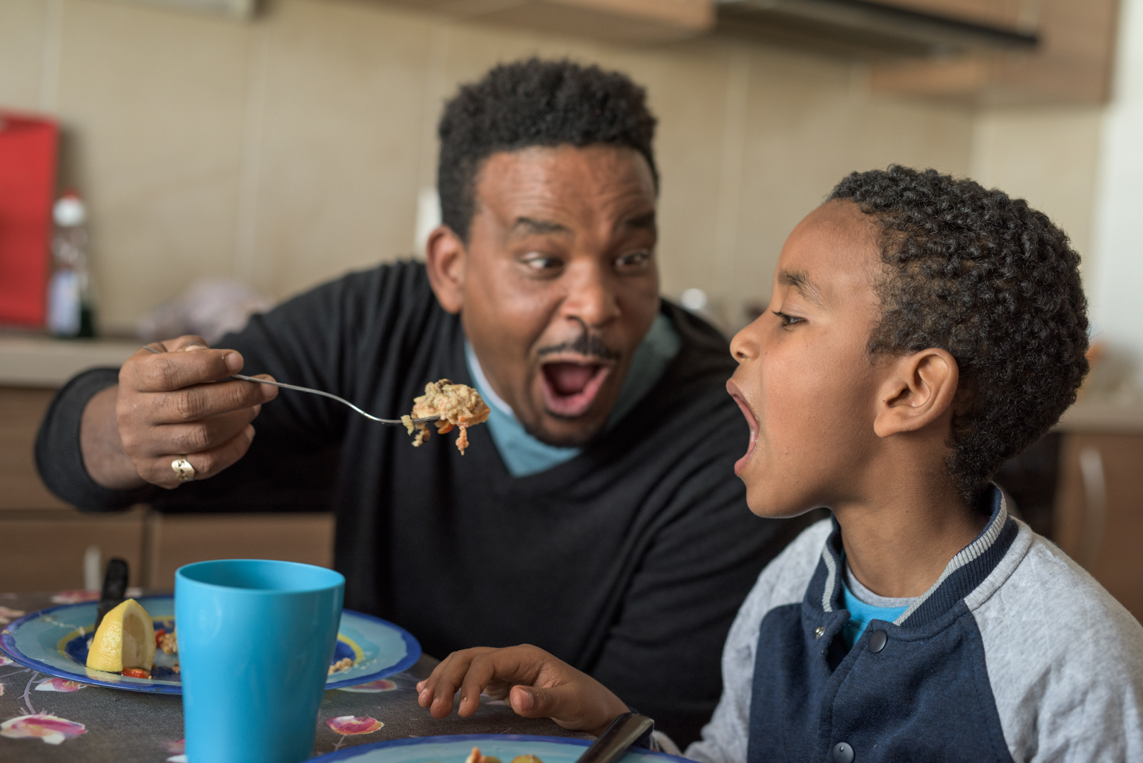 Il y a quatre mois de cela, Biniam habitait encore à Addis-Abeba en Ethiopie avec Shewit, sa maman, Avant, il a vécu sous tente dans l’immense camp de réfugiés de Mai-Aini (10 000 personnes), administré par l’ONU. Il s’y est rendu à pied depuis l’Erythrée voisin, son pays. Trois jours de marche avec un passeur. Encore avant, Biniam a passé une année à la prison de Karsheli d’Asmara, avec Shewit. Il ne s’en souvient évidemment pas. Il ne se souvenait pas non plus de Mulugeta, son père, célèbre saxophoniste qui a quitté l’Erythrée en 2012 et a obtenu l’asile politique en Suisse. Il travaille comme homme à tout faire sur les rives du Léman.