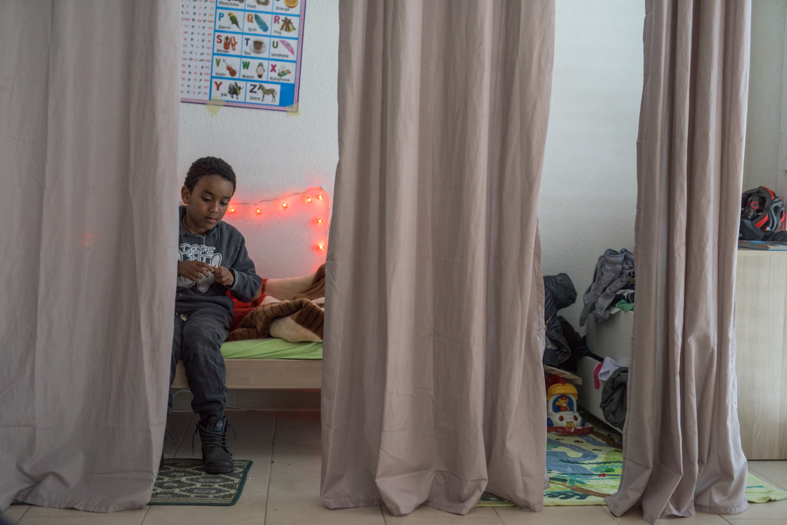 Shewit a trouvé que son mari avait changé: «Il a pris des kilos et il est devenu Suisse, il est content, avant il était souvent fâché.» Elle apprend le français, semble parfois lointaine, encore un peu là-bas, dans la Corne de l’Afrique. L’autre jour, elle a été convoquée par la maîtresse de Biniam pour parler de lui, de sa vie en classe, de ses progrès. Elle a eu peur de s’y rendre. «Le passé l’a rendue craintive», dit Claire Annette. Biniam a reçu récemment des gants, ne les quitte plus. Il a participé le 2 décembre à la Course à travers Aigle. Sur le parcours, Mulugeta et Shewit l’ont encouragé, comme tous les papas et toutes les mamans.
