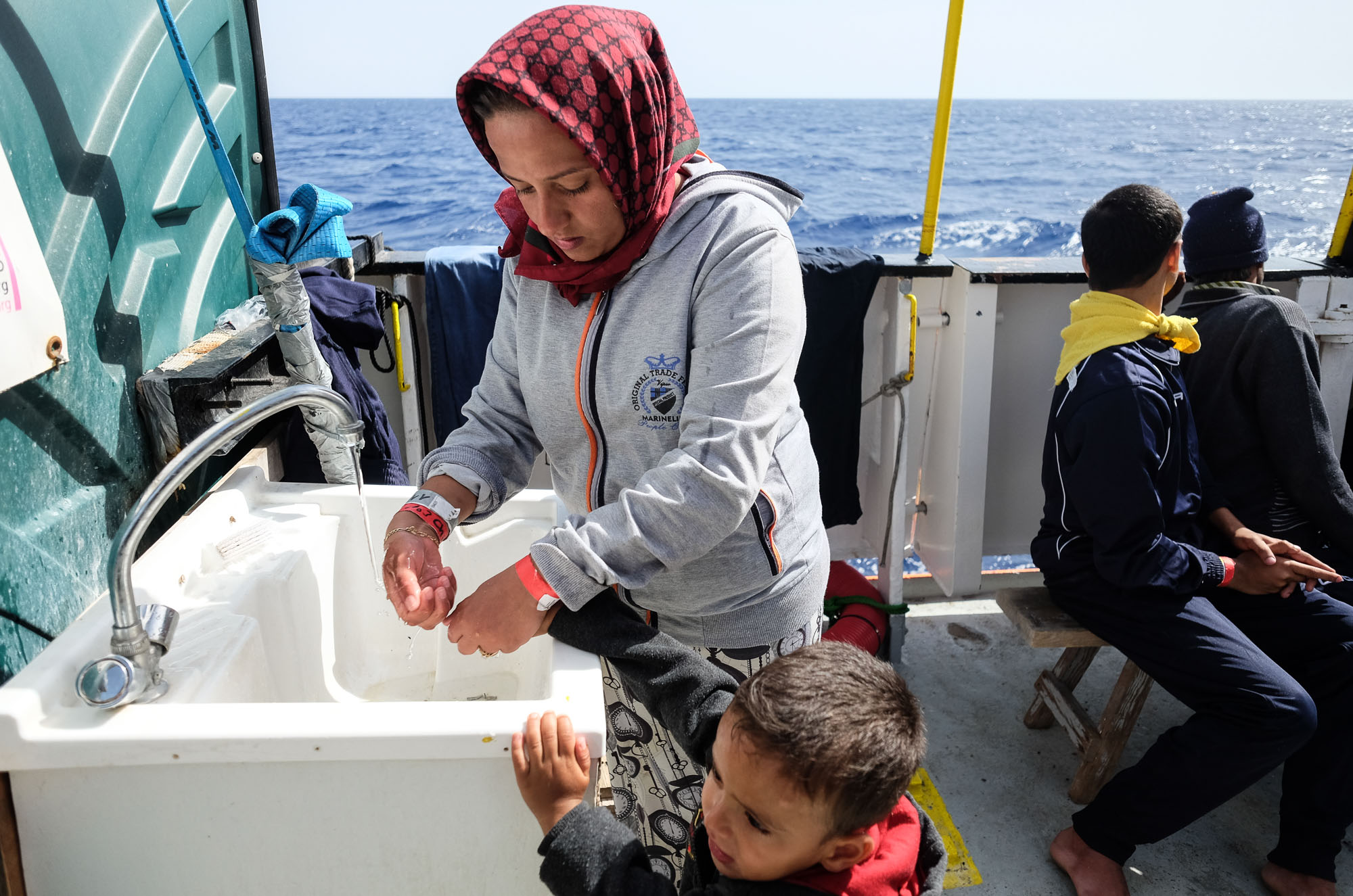 DIAPORAMA. A bord, la vie suit son cours. Entre lessives et consultations médicales, les passagers fêtent leur sauvetage. Cinquante heures plus tard, ils débarqueront à Catane, en Italie, où ils seront acheminés vers différents camps.