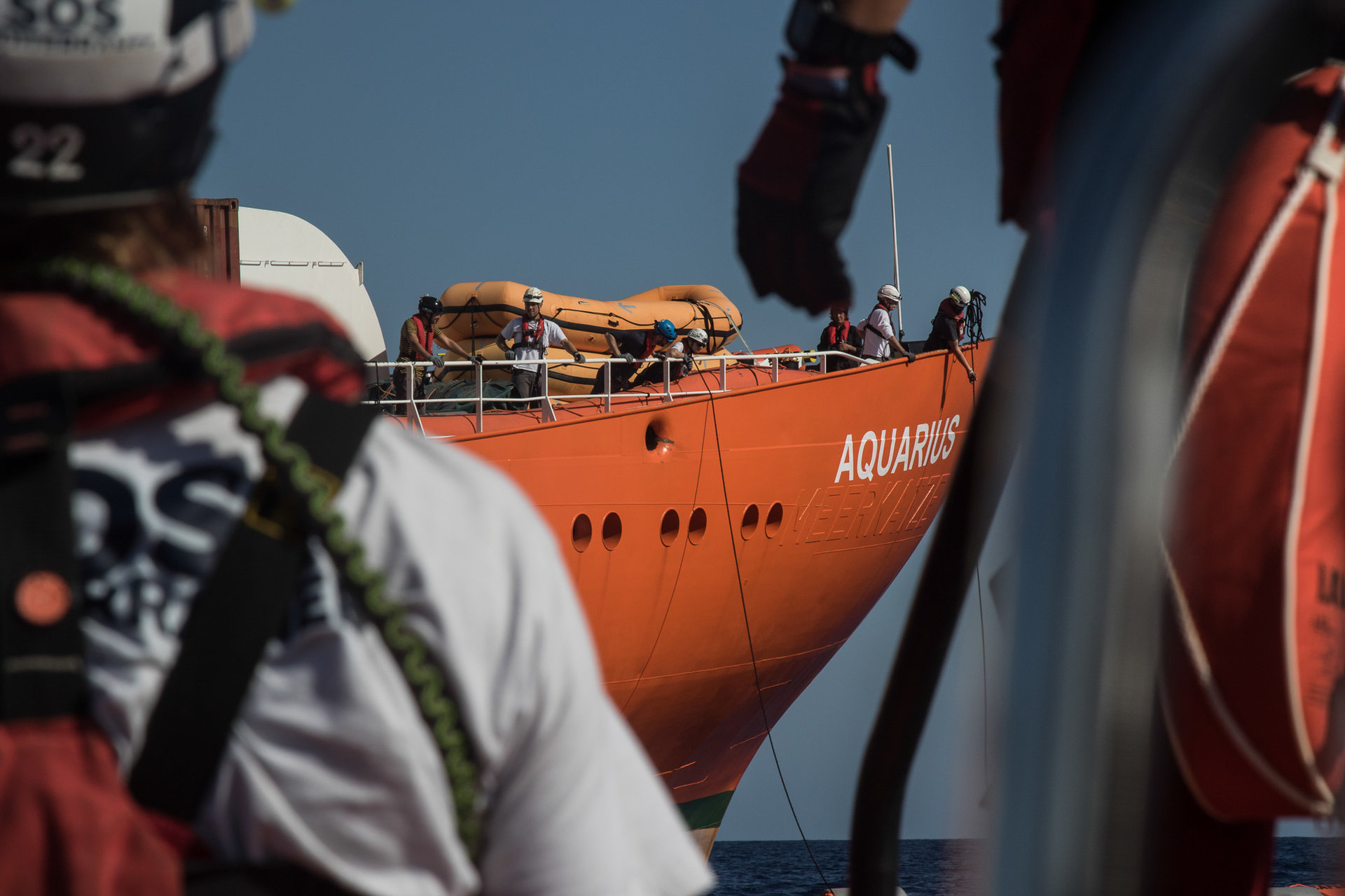 Le bateau Astral, de Proactiva Open Arms, a sauvé 105 personnes massées sur une embarcation de fortune. Mais le voilier – cédé par un riche britannique – est trop petit pour les accueillir et l’aide de l’Aquarius a été sollicitée. Alors que les passagers des deux navires peuvent se regarder dans le blanc des yeux, les centres de coordination italien et britannique (contacté en deuxième instance par l’ONG) se renvoient mutuellement la responsabilité. L’autorisation n’est octroyée qu’une fois la nuit tombée. Après 14 heures de négociations et d’angoisse, les zodiacs peuvent enfin être mis à l’eau.