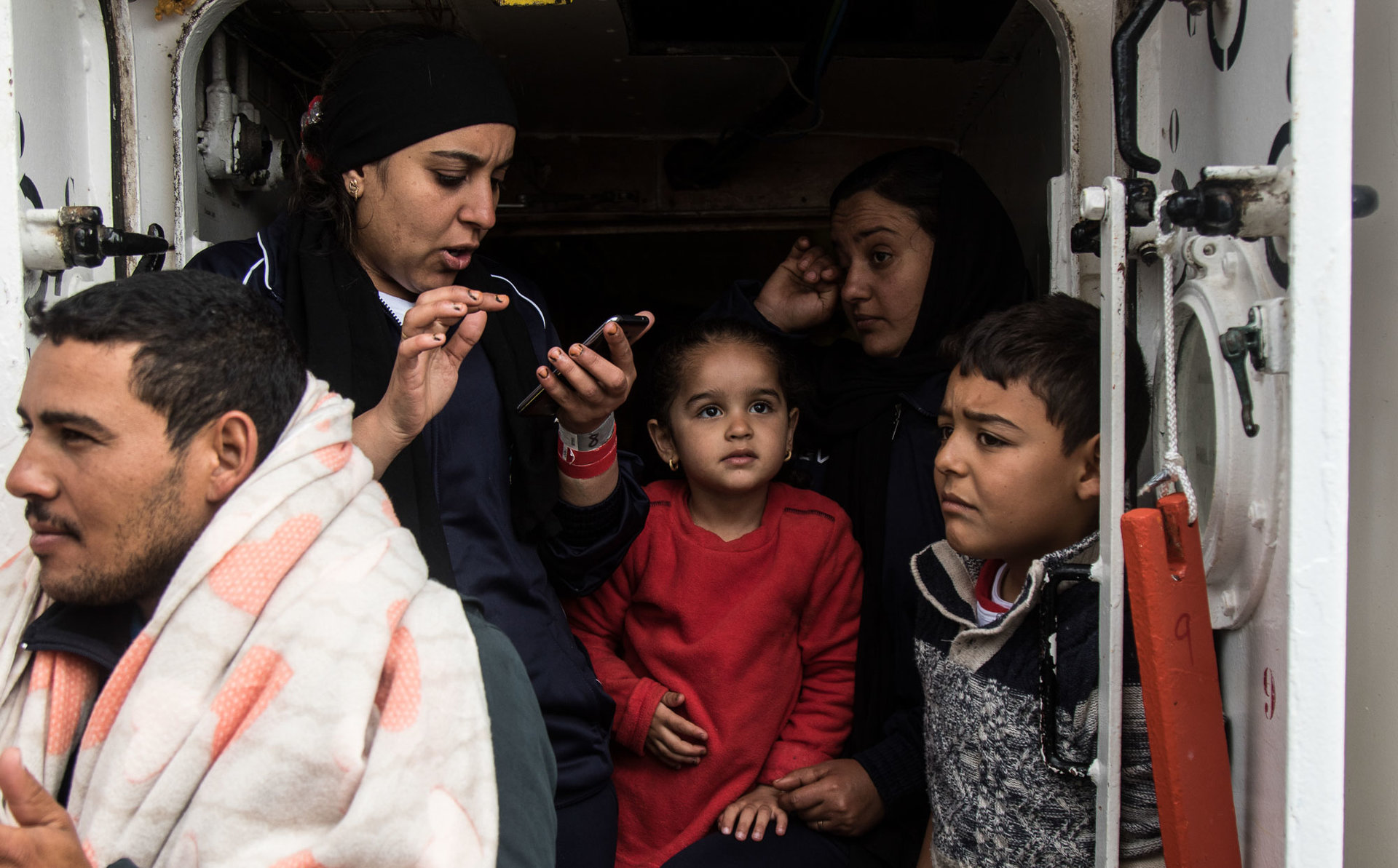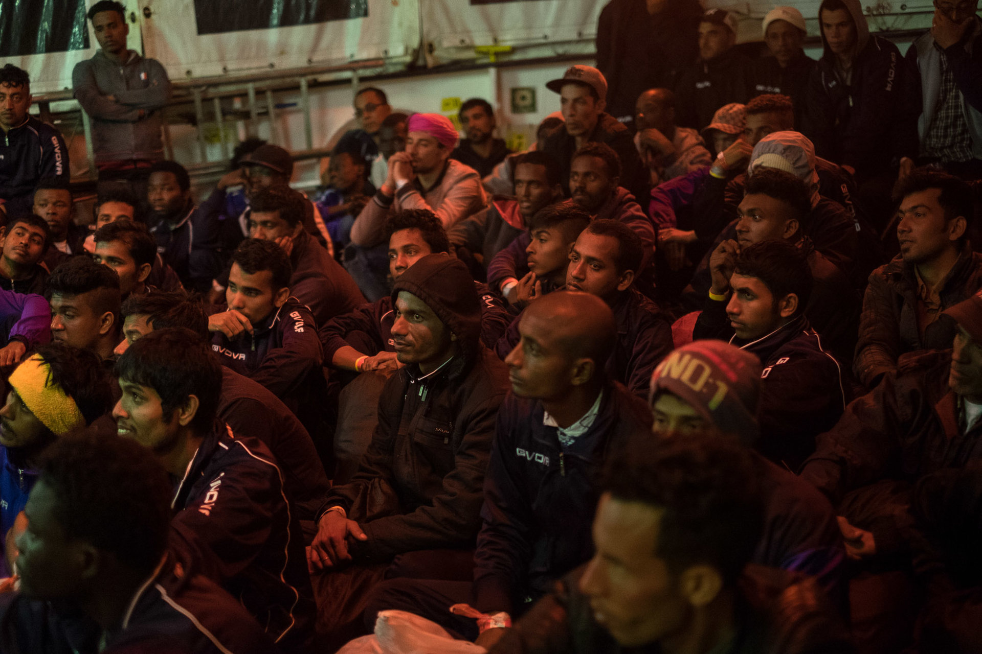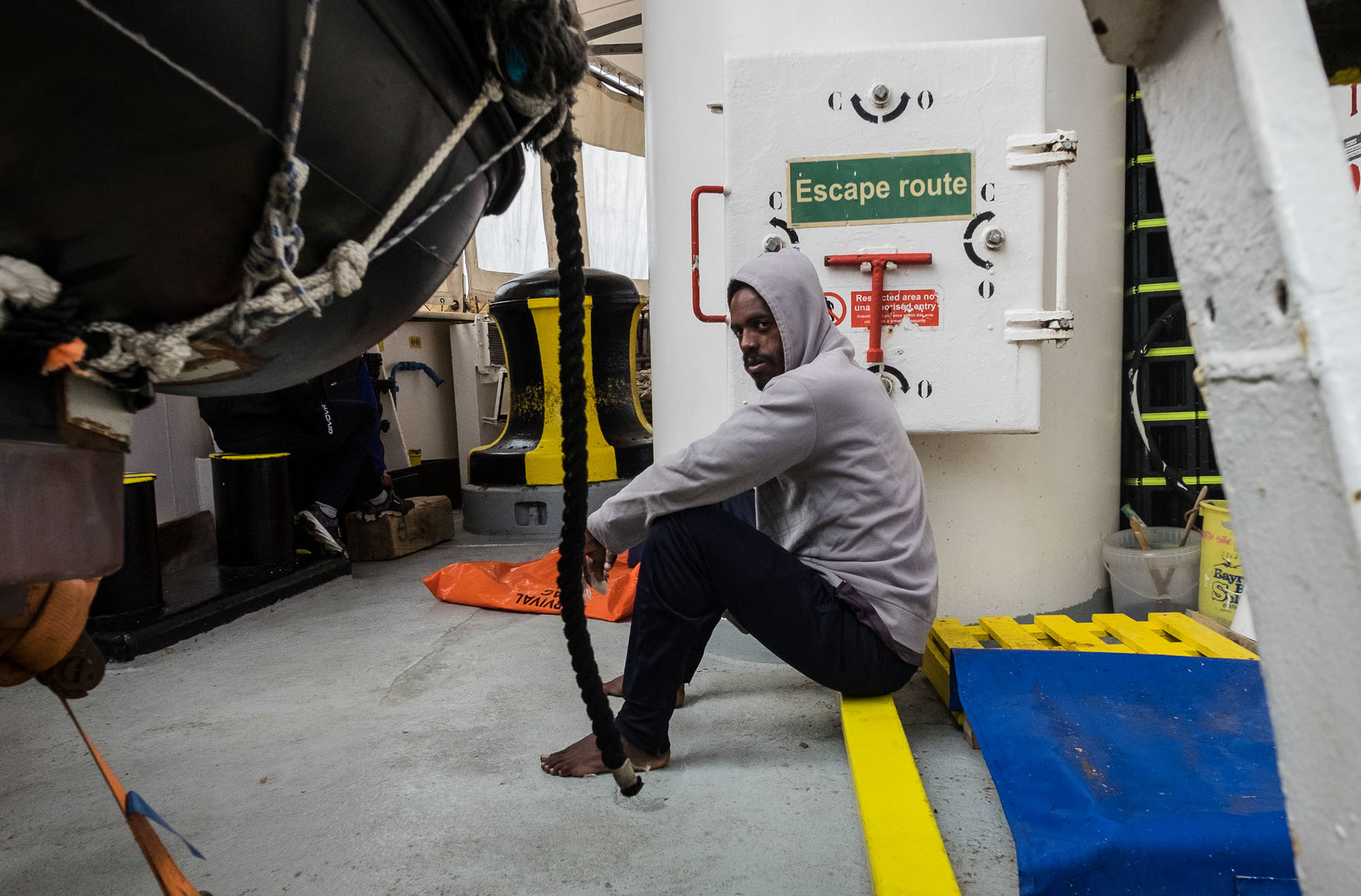 A bord, les migrants peinent encore à faire confiance à ces inconnus. «Vous êtes en sécurité ici», le message de bienvenue du logisticien de MSF Fanch Redon, traduit en arabe par un interprète et en bengali par un migrant, ne suffit pas. La rumeur d’un retour en Libye suscite un petit vent de panique. La plupart des personnes ont été battues, emprisonnées ou forcées de travailler pendant de longs mois avant de pouvoir payer les 1000 à 1500 euros de leur traversée.