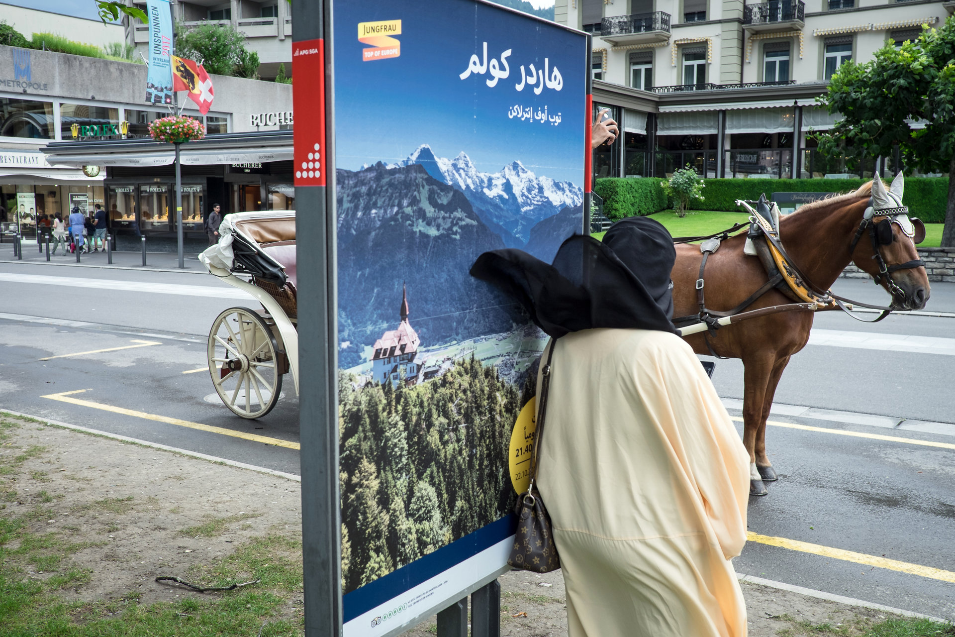 Res Grossniklaus est l’un des seuls professionnels du tourisme à prendre publiquement position pour l’interdiction du voile intégral. Le peuple suisse sera sans doute appelé à se prononcer sur cette question d’ici à 2019. Le comité d’Egerkingen, organisation proche de l’UDC et de l’ASIN (Action pour une Suisse indépendante et neutre), s’affaire à la récolte des signatures pour lancer son initiative. A Interlaken, ce projet choque et inquiète les professionnels du tourisme. Sur le front politique, il divise jusque dans les rangs de l’UDC.