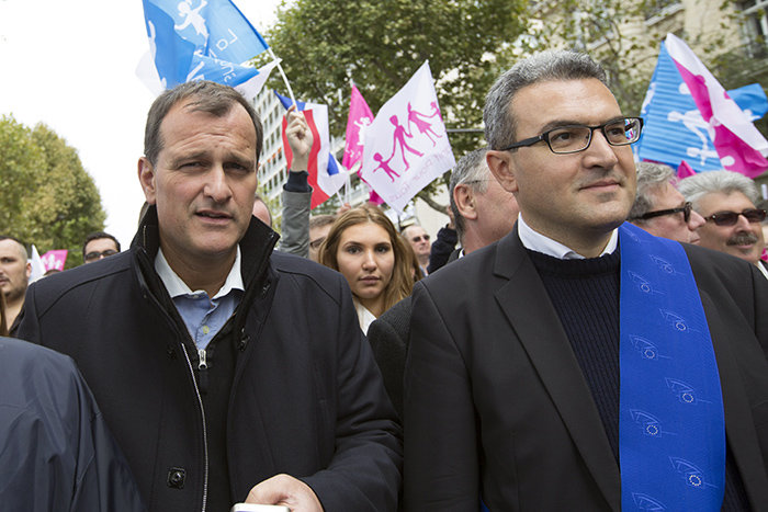 De grands rassemblements se forment, début 2013, contre l’ouverture du mariage aux homosexuels. Selon l’association La Manif pour tous, un million de personnes descendent dans les rues de Paris en janvier. Mais Marine Le Pen, Florian Philippot et plusieurs cadres du parti refusent de se joindre aux cortèges. Le journal d’extrême droite Minute titre même le 2 janvier 2013: «Existe-t-il un lobby gay au FN?».