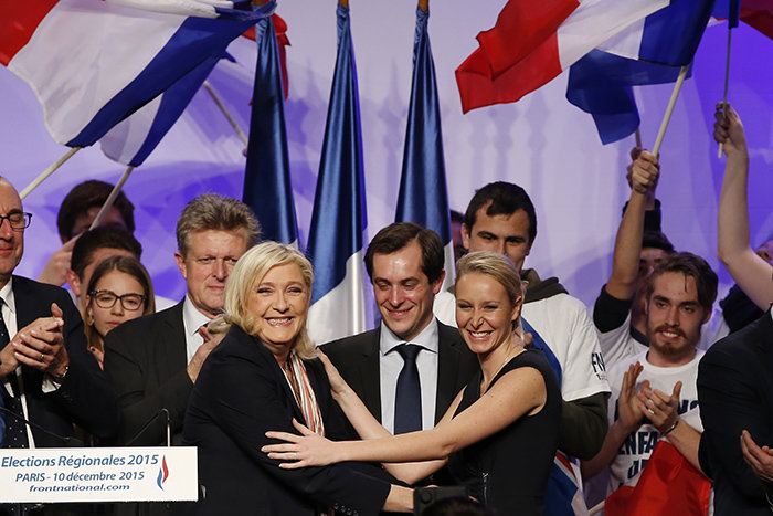 Le Front national confirme sa position de premier parti de France. Le 6 décembre 2015, lors du premier tour des élections régionales, il se place devant les Républicains (ex-UMP) et le Parti socialiste avec 27,73% des voix et arrive en tête dans six régions sur les 13 que compte désormais la France. Dans deux régions, la gauche s'est désistée au profit de la droite.