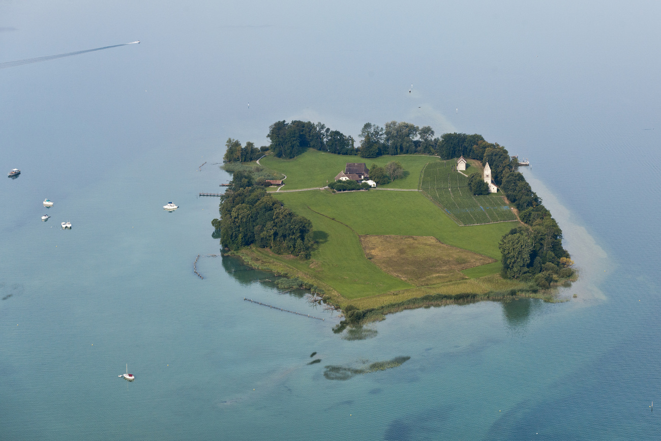 ReichenauD'une surface de 11 hectares, Ufenau est la plus grande île lacustre de Suisse. L'Île Saint-Pierre – St. Petersinsel en allemand – qui se trouve sur le lac de Bienne, est plus de dix fois plus grande, mais n'est plus une vraie île depuis la fin du XIXe siècle et la première correction des eaux du Jura, qui en a fait une presqu'île en faisant baisser le niveau du lac. Reichenau, à 430 hectares, n'est pas suisse: c'est une île allemande, près des rives thurgoviennes du lac de Constance. Quant à Lützelau, si elle se trouve bien sur le lac de Zurich, elle ne fait que 3,38 hectares: son nom signifie d'ailleurs «petite île» en vieux haut-allemand. Elle est tout de même assez grande pour abriter un terrain de camping!