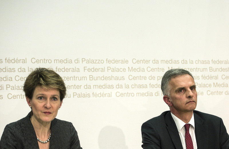 Simonetta Sommaruga et Didier Burkhalter lors de la conférence de presse après le vote, 9 février 2014. Lire les réactions des lecteurs du TempsLe coup de massue. Avec une différence de 19 516 bulletins, les Suisses acceptent l’initiative de l’UDC dite «contre l’immigration de masse». La participation a été élevée pour les standards suisses, à 56,5%. Huit cantons et demi ont refusé le texte, les romands ainsi que Zurich, Bâle-Ville et Zoug.