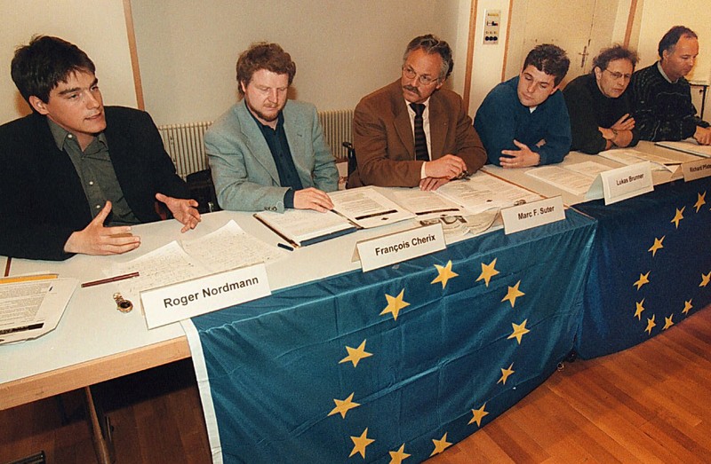 Roger Nordmann (Né le 7 décembre), Francois Cherix (Mouvement européen suisse), Richard Pfister et Nino Enderlin. Lire l'article du Journal de GenèveLes forces pro-européennes se sont éparpillées au fil des années. En Suisse romande, par exemple, coexistent, entre autres, le groupe Né le 7 décembre, le Mouvement européen suisse, les Jeunes Fédéralistes européens et Renaissance Suisse-Europe. Cette dernière a été conçue comme un parti politique, certaines figures en sont issues, dont la Vaudoise Anne-Catherine Lyon.